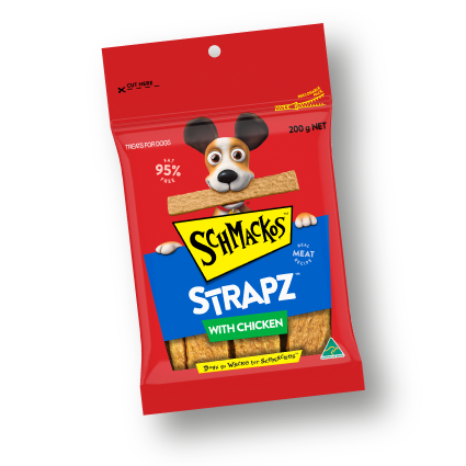 SCHMACKOS™ STRAPZ™ with Chicken treats are baked then air dried to seal in the delicious flavour of real chicken.